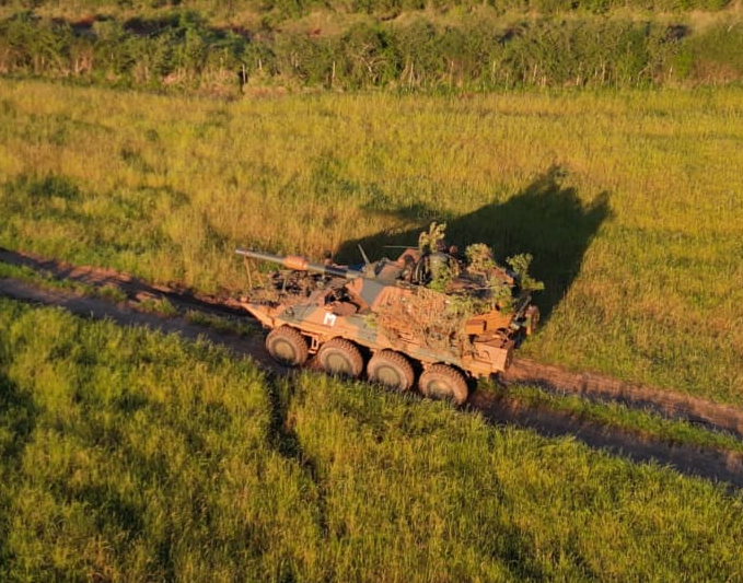 Durante todo o período da manobra (marcha para o combate e ataque de oportunidade), foi atribuída ao 6º Esquadrão de Cavalaria Mecanizado (6º Esqd C Mec)2 a importante missão de segurança de um flanco exposto da Brigada, por meio do qual era possível a interferência do inimigo, com o potencial para comprometer a progressão da tropa e o cumprimento de suas tarefas. Para tal, foram empregadas as duas VBC Cav-MSR 8x8 Centauro II BR (ou simplesmente Centauro II BR) recentemente recebidas3, em combinação com Viaturas Blindadas de Transporte de Pessoal Média Sobre Rodas Guarani, orgânicas dessa subunidade.