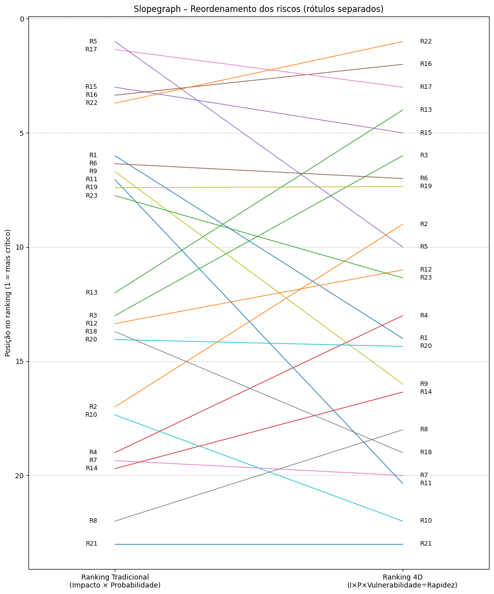 A Matriz 4D amplia a análise tradicional ao incorporar duas dimensões adicionais àquelas já consagradas: vulnerabilidade organizacional e rapidez na percepção. A vulnerabilidade expressa o grau de preparo da organização para lidar com a materialização do risco, enquanto a rapidez na percepção indica o tempo necessário para identificar o evento e reagir a seus efeitos.