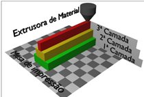 Figura 1 – processo de impressão 3D por depósito de material em 3 camadas