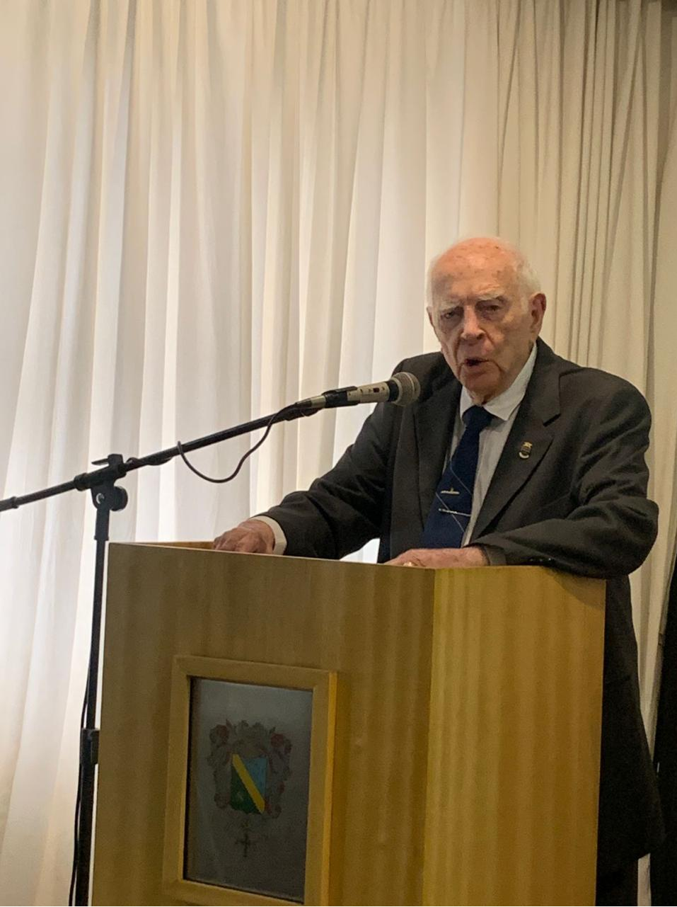 Imagem 6 - Capitão de Mar e Guerra João Baptista Torrents Gomes Pereira, da Marinha do Brasil, ex-combatente da Segunda Guerra Mundial e antigo integrante do Estado-Maior da FIP/OEA, em evento promovido pelo Instituto de Geografia e História Militar do Brasil (IGHBM), com apoio do Clube Militar (AGO 2025). |